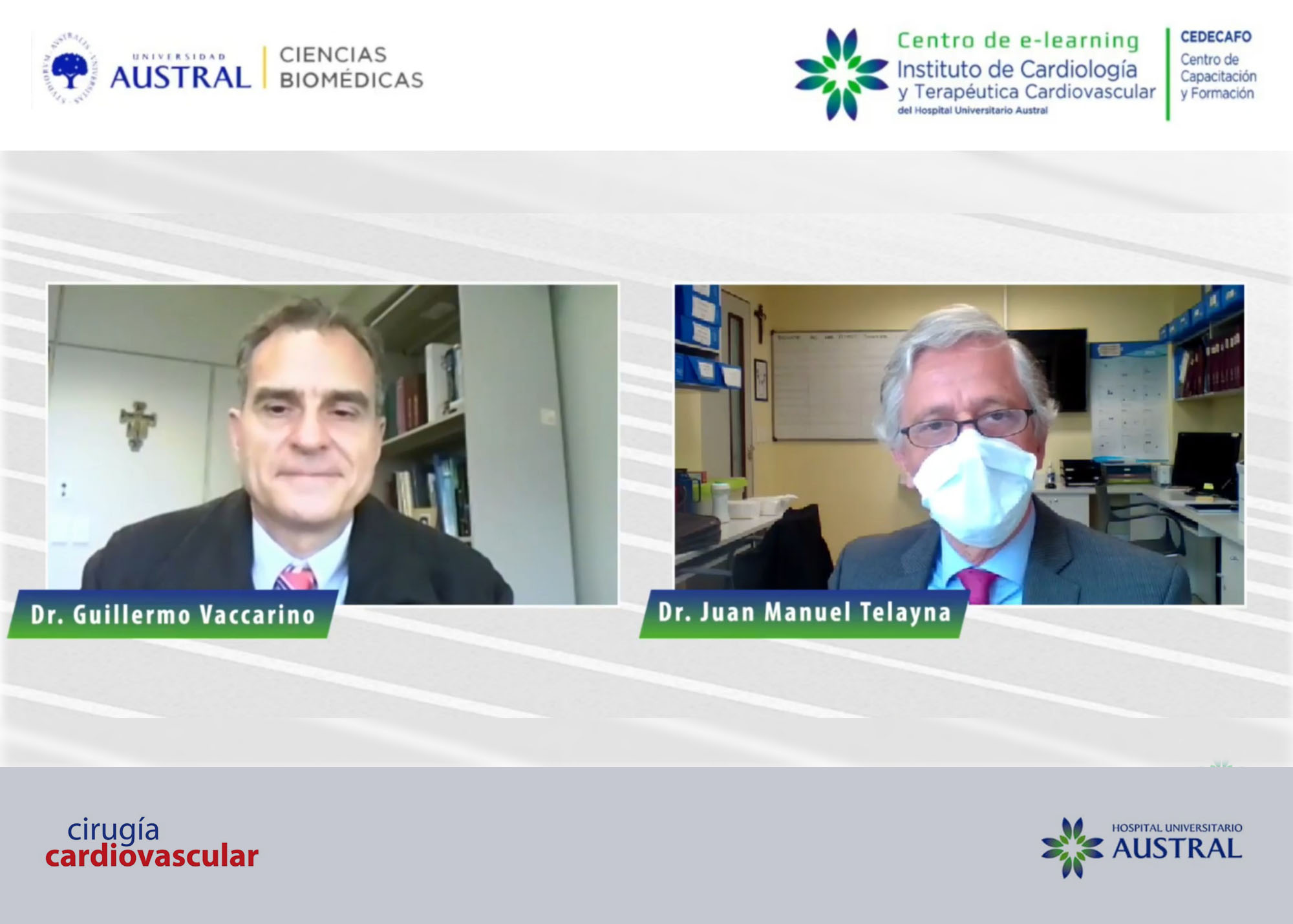 La sesión de Cirugía Cardiovascular y Terapéutica Intervencionista estuvo a cargo de la coordinación del Dr Guillermo Vaccarino, Jefe de Servicio de Cirugía Cardiovascular y el Dr Juan Manuel Telayna, Jefe de Servicio de Hemodinamia.